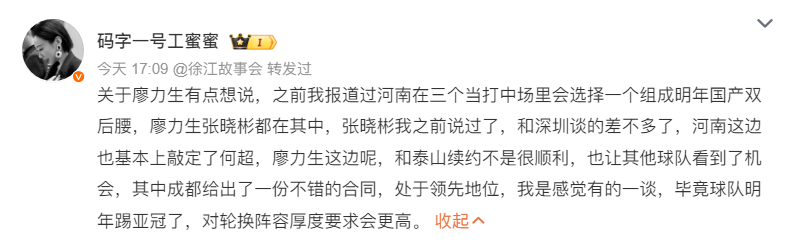 雷速体育12月25日讯 据《足球报》记者鲁蜜报道,山东泰山中场廖力生与球队的续约谈判并不顺利,可能签约成都蓉城。2024赛季,廖力生代表山东泰山在各项赛事中出场31次,贡献3粒进球与4次助攻,根据德转显示,他与山东泰山的合同将在2026年底到期。记者鲁蜜写道:“廖力生这边呢,和泰山续约不是很顺利,也让其他球队看到了机会,其中成都给出了一份不错的合同,处于领先地位,我是感觉有的一谈,毕竟球队明年踢亚冠了,对轮换阵容厚度要求会更高。”